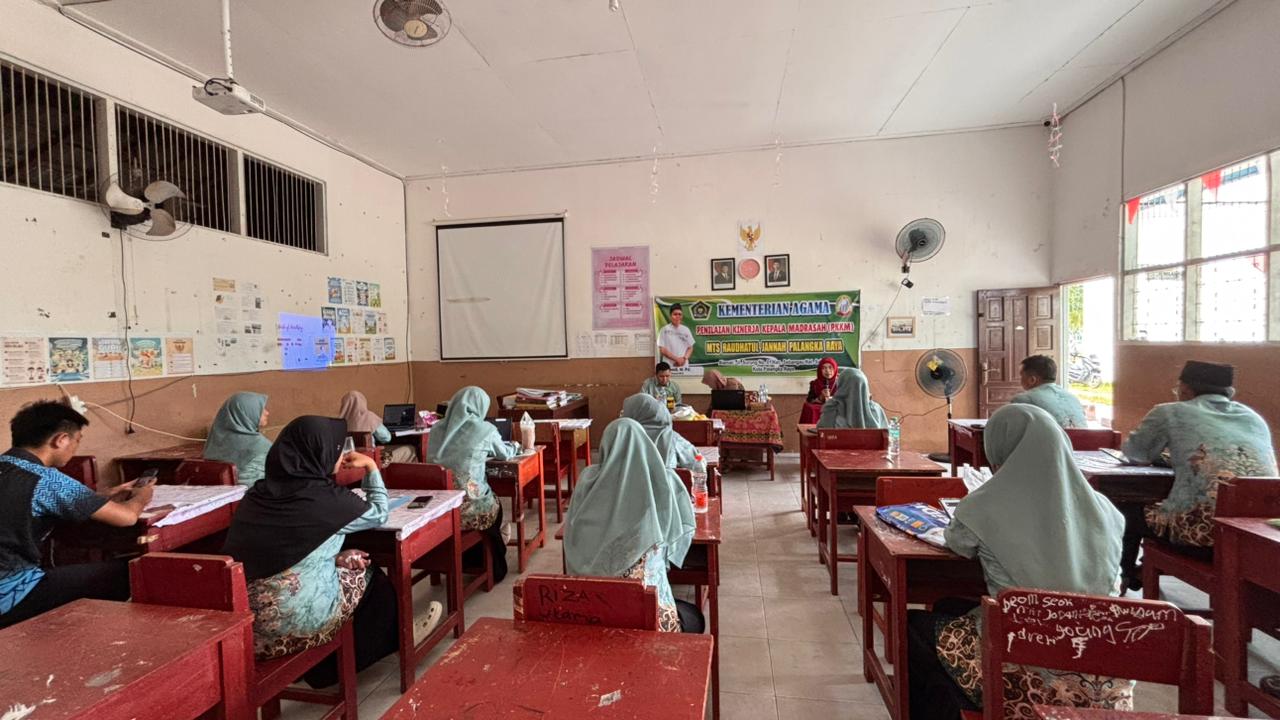 MTs Raudhatul Jannah Palangka Raya melaksanakan kegiatan Penilaian Kinerja Kepala Madrasah (PKKM) pada Rabu (12/11/25) di ruang madrasah setempat. MTs Raudhatul Jannah Palangka Raya melaksanakan kegiatan Penilaian Kinerja Kepala Madrasah (PKKM) pada Rabu (12/11/25) di ruang madrasah setempat. Kegiatan ini dihadiri oleh dua pengawas madrasah Kemenag Kota Palangka Raya, Siti Mutiah, M.Pd dan Rina Erlianie, M.Pd, bersama Kepala MTs Raudhatul Jannah Junadi, M.Pd, serta seluruh dewan guru.
